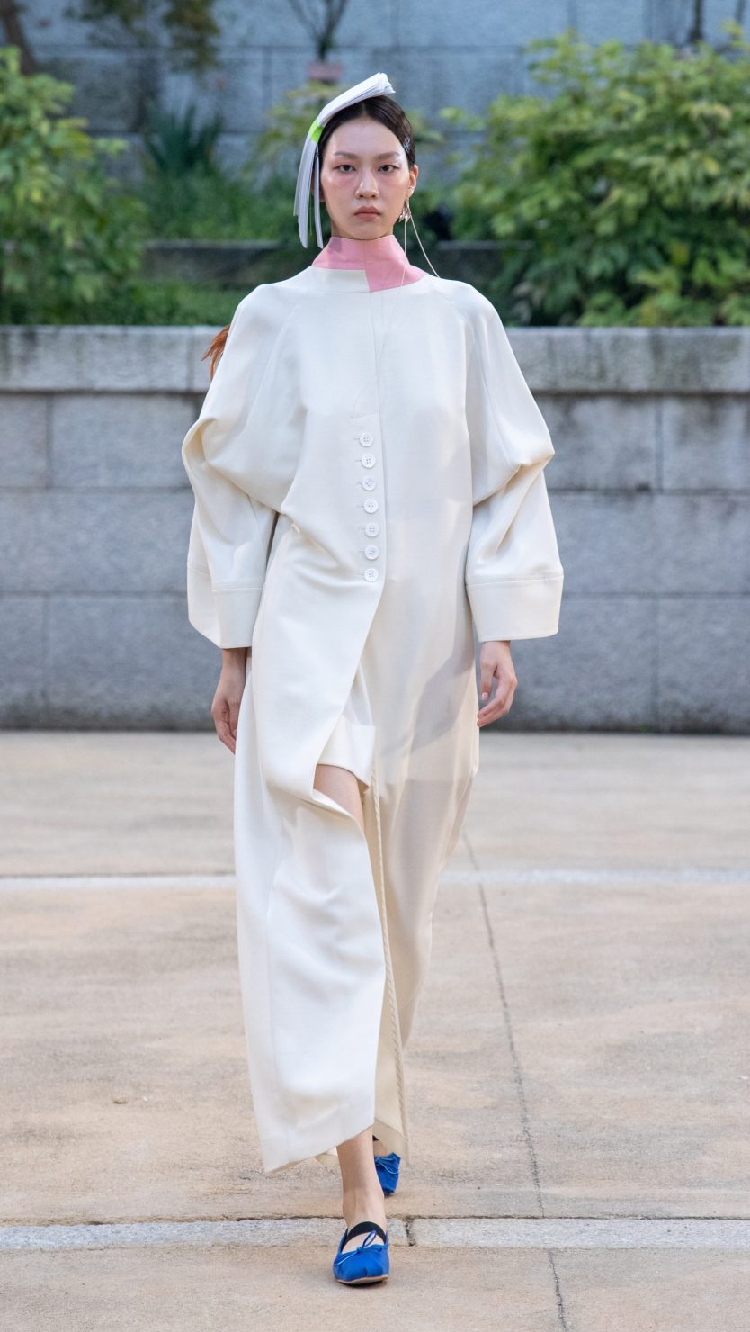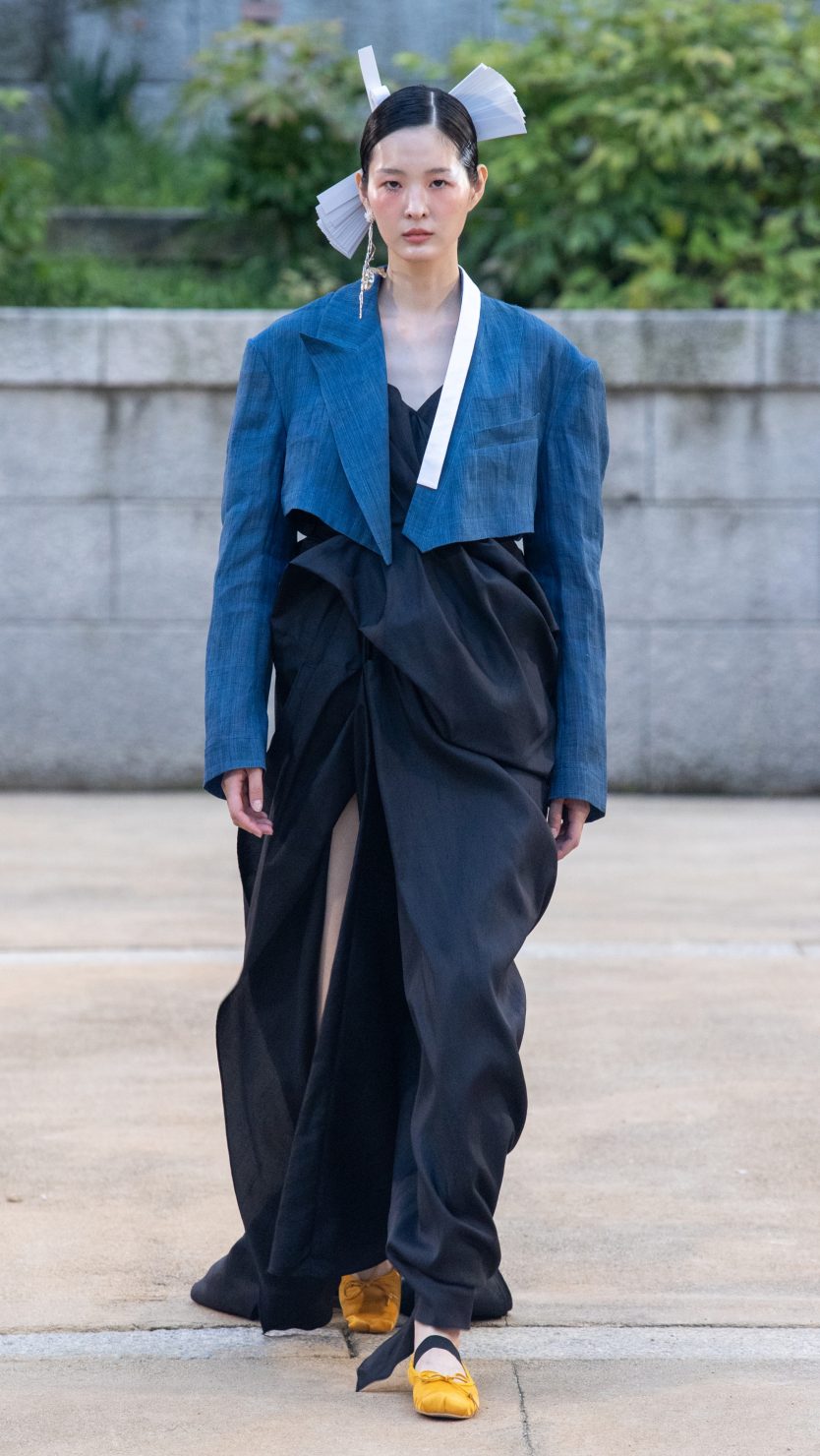 Organic silhouettes and Hanbok-inspired volumes merge with bold